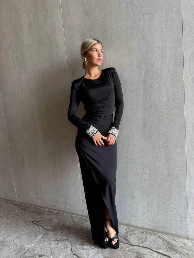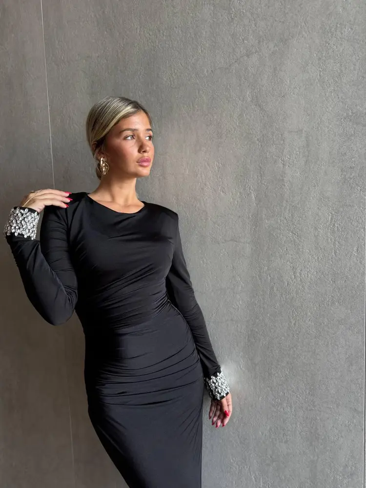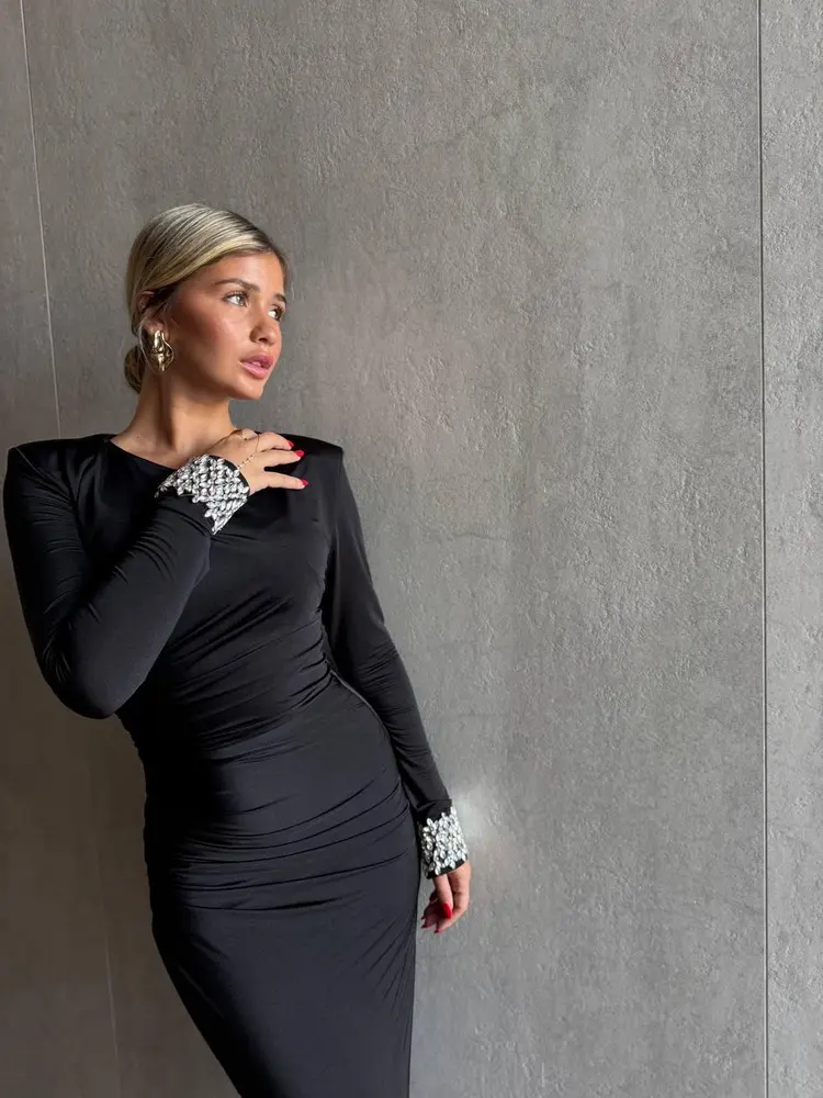 שמלה מבד לייקרה בתוספת אבנים בידיים אלגנטית ומרשימה השמלה המושלמת לאירוע הקרוב