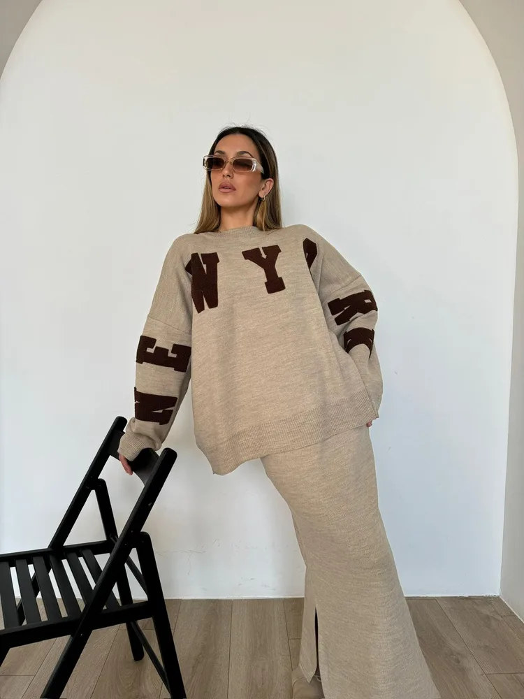חליפת מבד סריג 2 חלקים  בגזרה ישרה מידה ONE SIZE