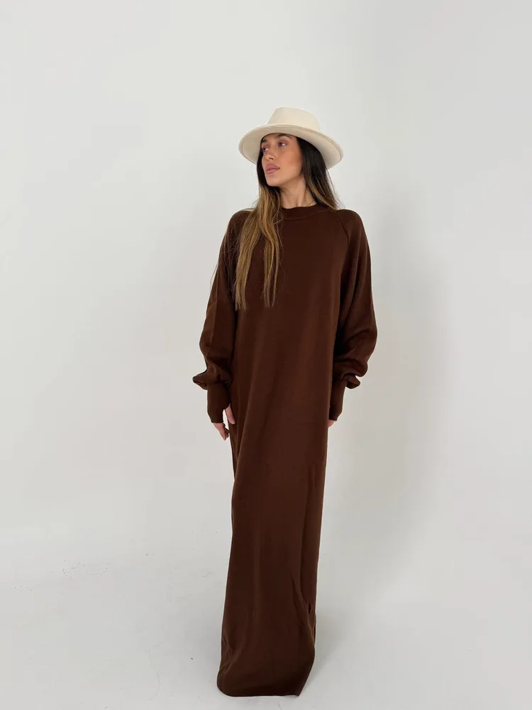 שמלת סריג נדירה גזרת אובר סייז נוחה וקלילה עם כפפה ביד