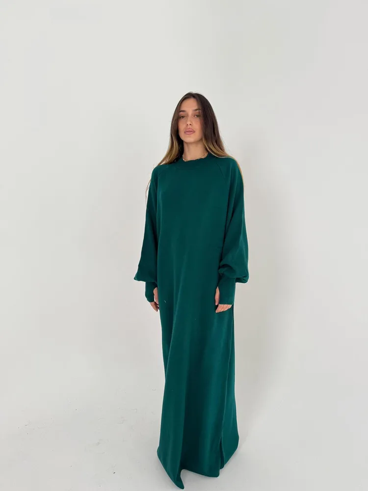 שמלת סריג נדירה גזרת אובר סייז נוחה וקלילה עם כפפה ביד