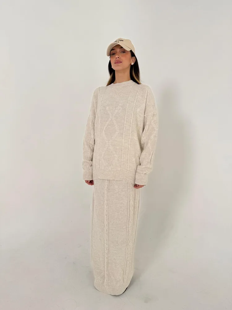 חליפה מבד סריג שתי חלקים בגזרה ישרה מגיעה במידה אחת ONESIZE