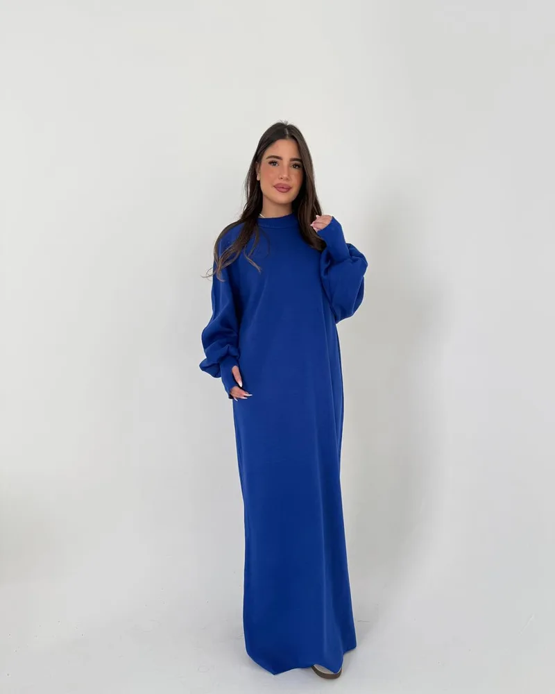 שמלת סריג נדירה גזרת אובר סייז נוחה וקלילה עם כפפה ביד