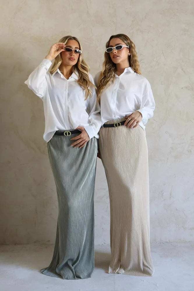 חצאית פליסה שמנת ירוק