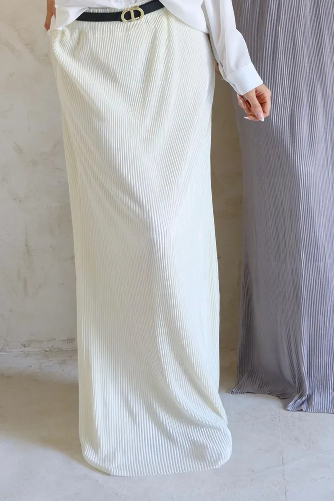 חצאית פליסה בגזרה ישרה עם ביטנה מגיעה עם חגורה במידה ONESIZE