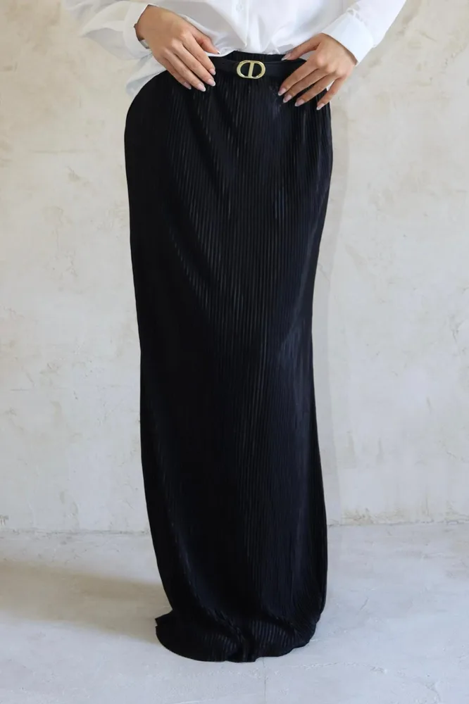 חצאית פליסה בגזרה ישרה עם ביטנה מגיעה עם חגורה במידה ONESIZE