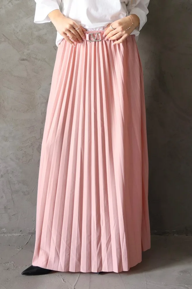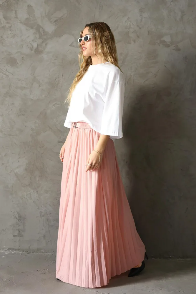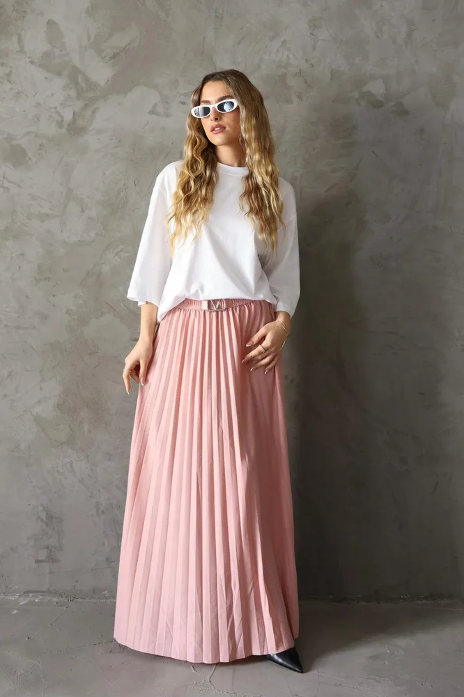 חצאית מבד פליסה עם חגורה מחוברת V גזרה מקסי אוברסייז מגיעה במידה אחת