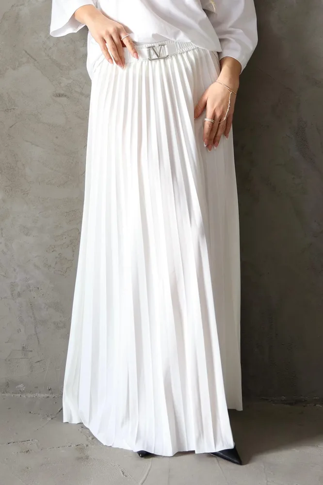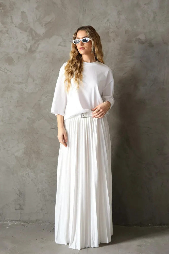 חצאית מבד פליסה עם חגורה מחוברת V גזרה מקסי אוברסייז מגיעה במידה אחת