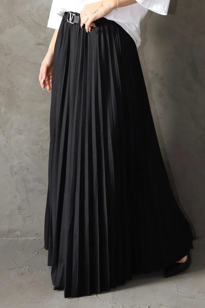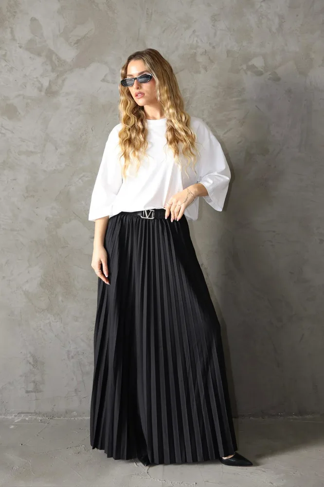 חצאית מבד פליסה עם חגורה מחוברת V גזרה מקסי אוברסייז מגיעה במידה אחת