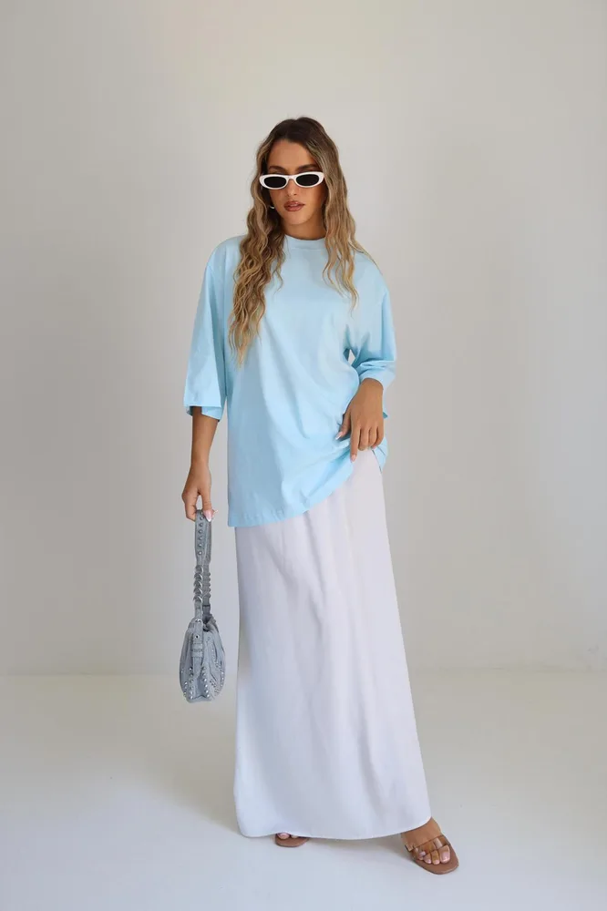 טי שרט בייסיק 3/4 בגזרת אובר סייז עוברת מרפק, טי שרט שהיא חובה בארון שלך מתאימה עם ה כ ל ! מידת הבגד על הדוגמנית וואן סייז.