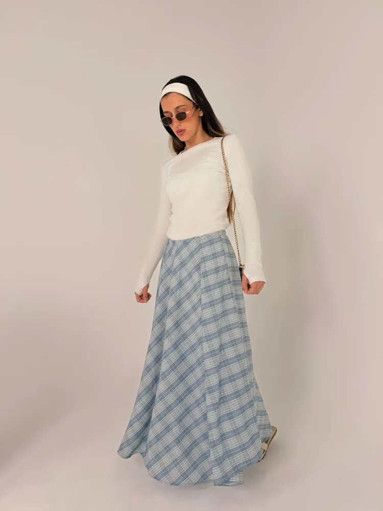 חצאית מאי תכלת משבצות
