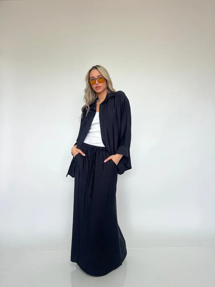 חליפת כפתורים מושלמת 🤍שתי חלקים  גזרה מחמיאה ונוחה ליום-יום ולחג בד נשפך ואלגנטי עם סגירת כפתורים עדינה מידות 1-4 | יושבת מושלם על הגוף ✨