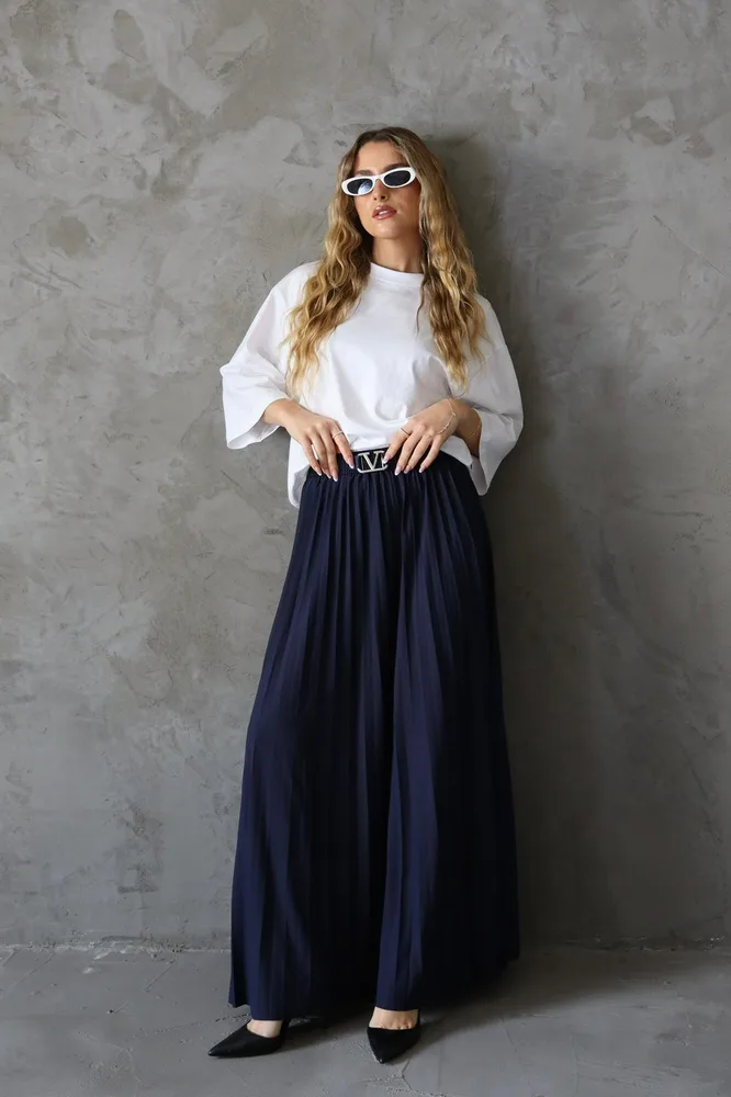 חצאית מבד פליסה עם חגורה מחוברת V גזרה מקסי אוברסייז מגיעה במידה אחת