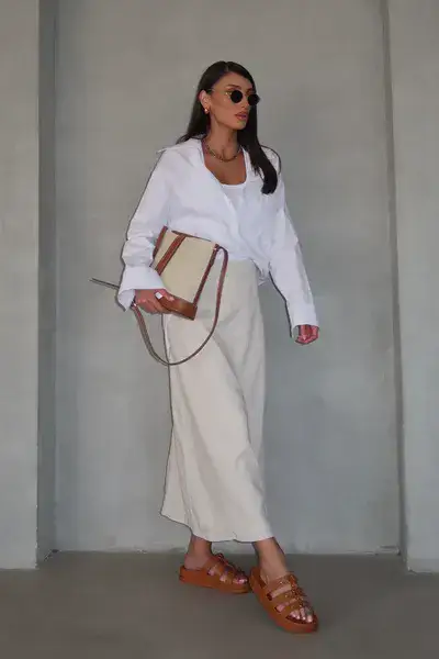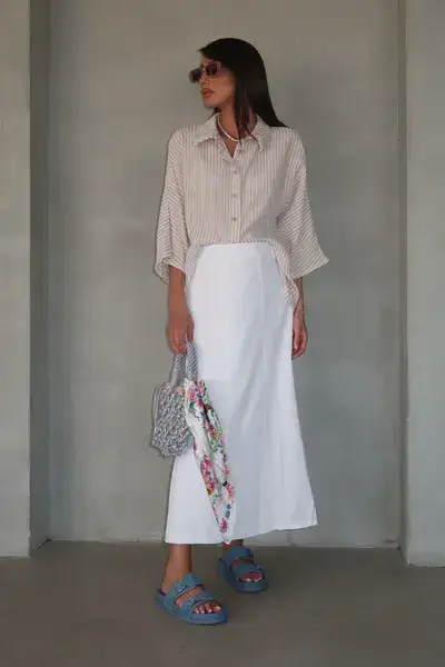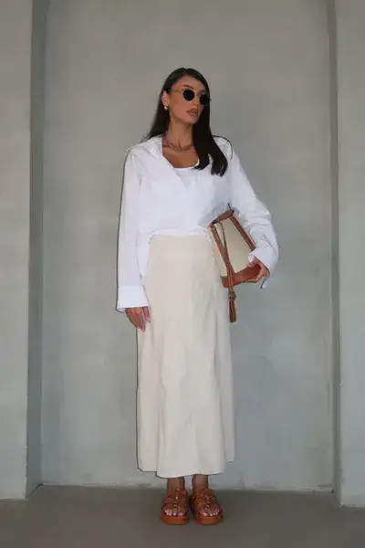 חצאית אוליב לבן