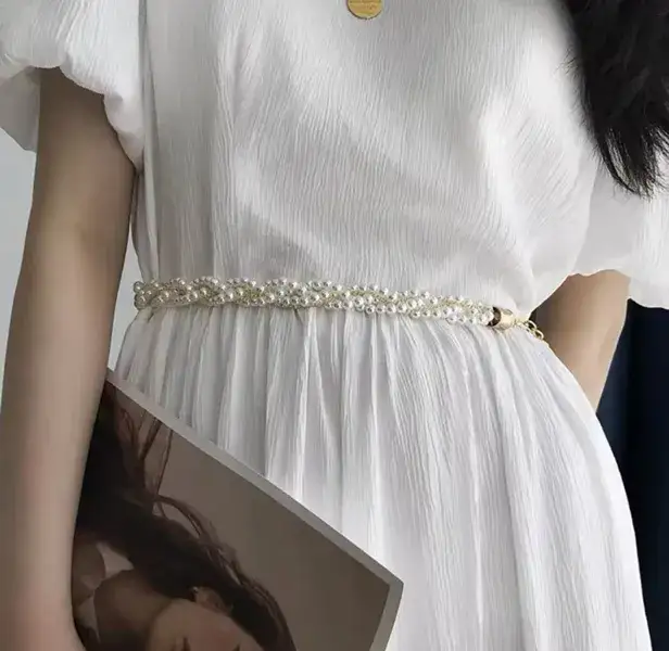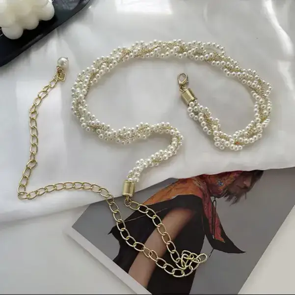 חגורת פנינים שרשרת מותניים - 105 ס"מ (זהב )