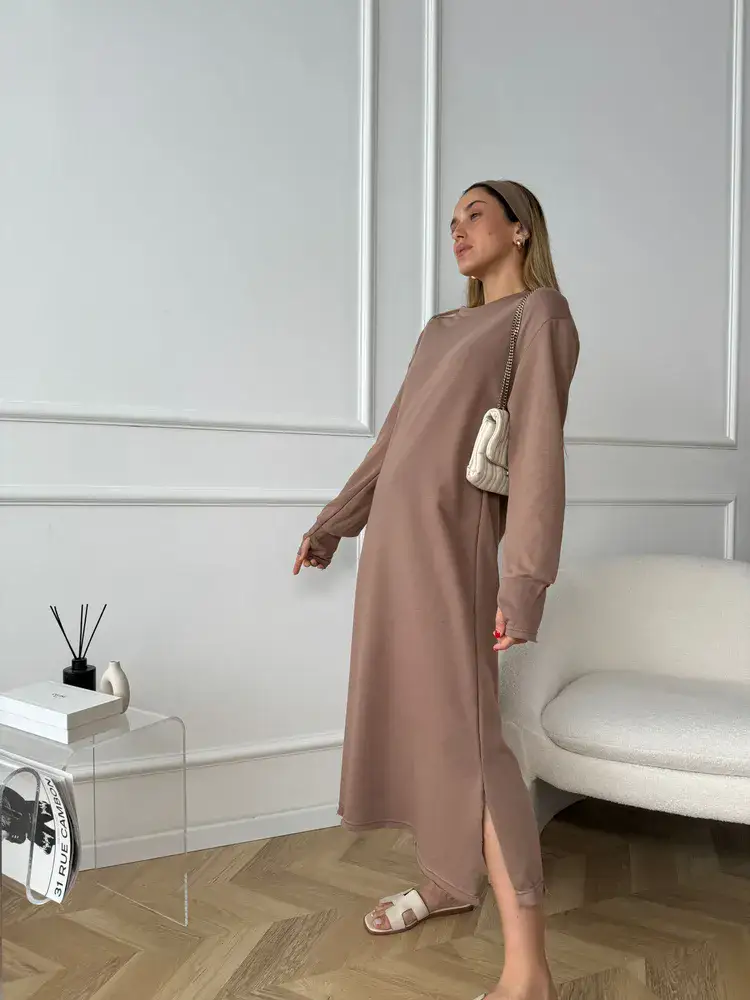 שמלה מושלמת מבד פרנץ טרי בגזרת אוברסייז עם כפפה בשרוול, מגיעה גם עם חגורת שרוך לקשירה במותן ליצירת לוק מושלם!